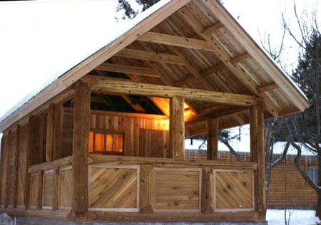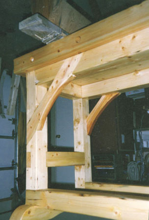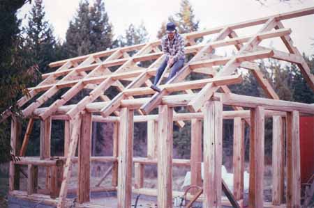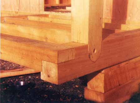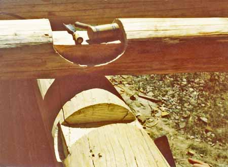 ![]() Timberframe joint detail | ![]() Custom log home under construction in Alberton, Montana |