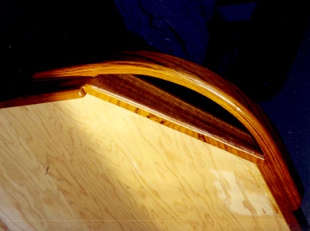 ![]() The first six photos are a recent custom kitchen with wall cabinets and island in maple, fir, and purpleheart | ![]() Wall cabinets with existing countertop and purpleheart backsplash |